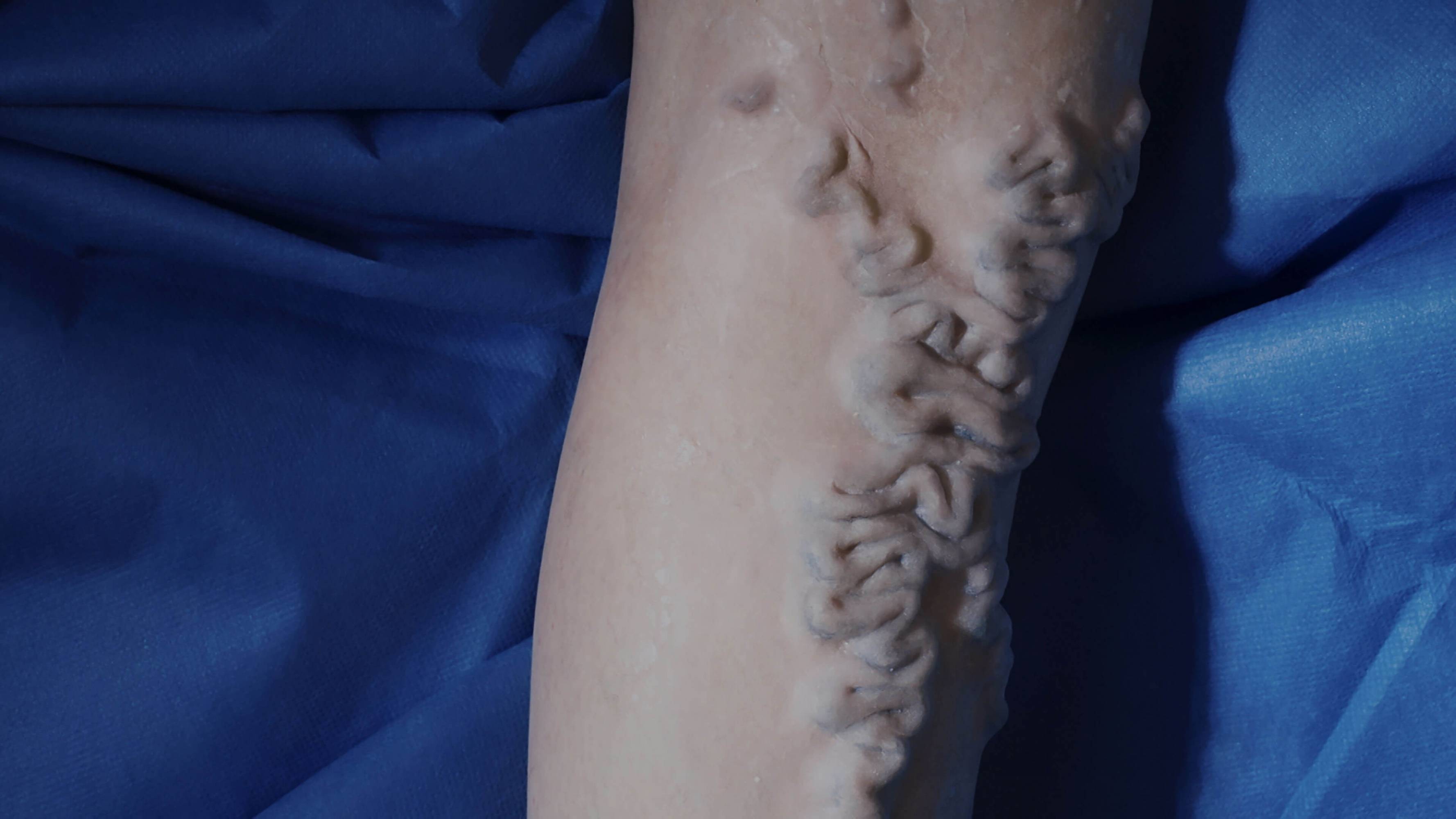 Blue Roses moves between an operating theatre, a cockroach laboratory, and a blue netherworld representing the interior of a knee. It blends documentary techniques (non-actors playing versions of themselves) with hallucinatory shifts in setting and character that disrupt our ability to distinguish what is real from what is imagined. Commissioned by Comar.