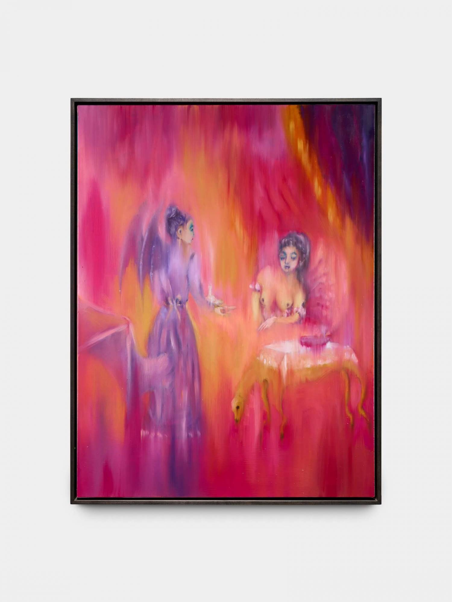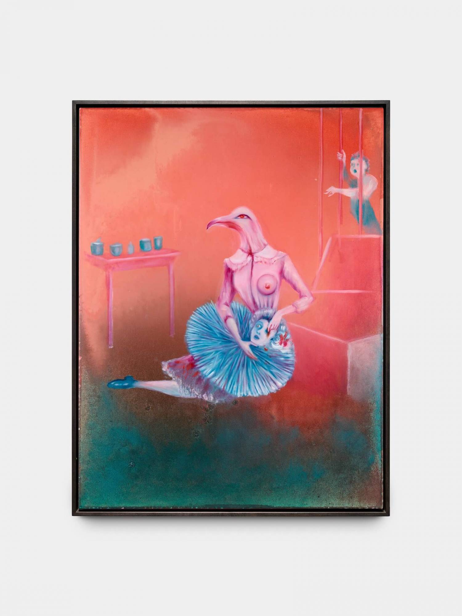 The Headless paintings are an homage to Max Ernst’s collage novel La femme 100 têtes (The Hundred Headless Woman, 1929), in which the artist revisits the book’s surrealist imagery through a contemporary lens. Inspired by Ernst’s mysterious collages and his feathered alter ego Loplop, the artist develops a multilayered visual world in which the boundaries between human and animal, past and present, myth and reality become blurred. The series combines personal, mythological and political themes into a suggestive narrative about transformation, identity and power. The result is a brutal cosmos of fragmented bodies and hybrid beings that examines the uncanny and multifaceted meaning of “headless”.