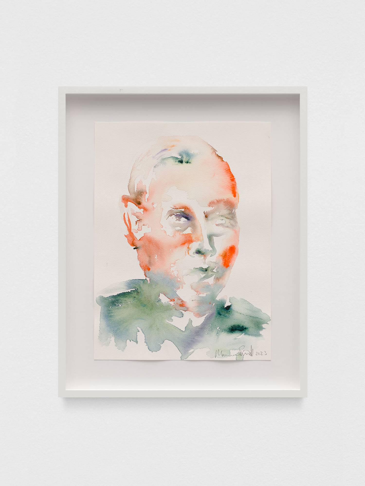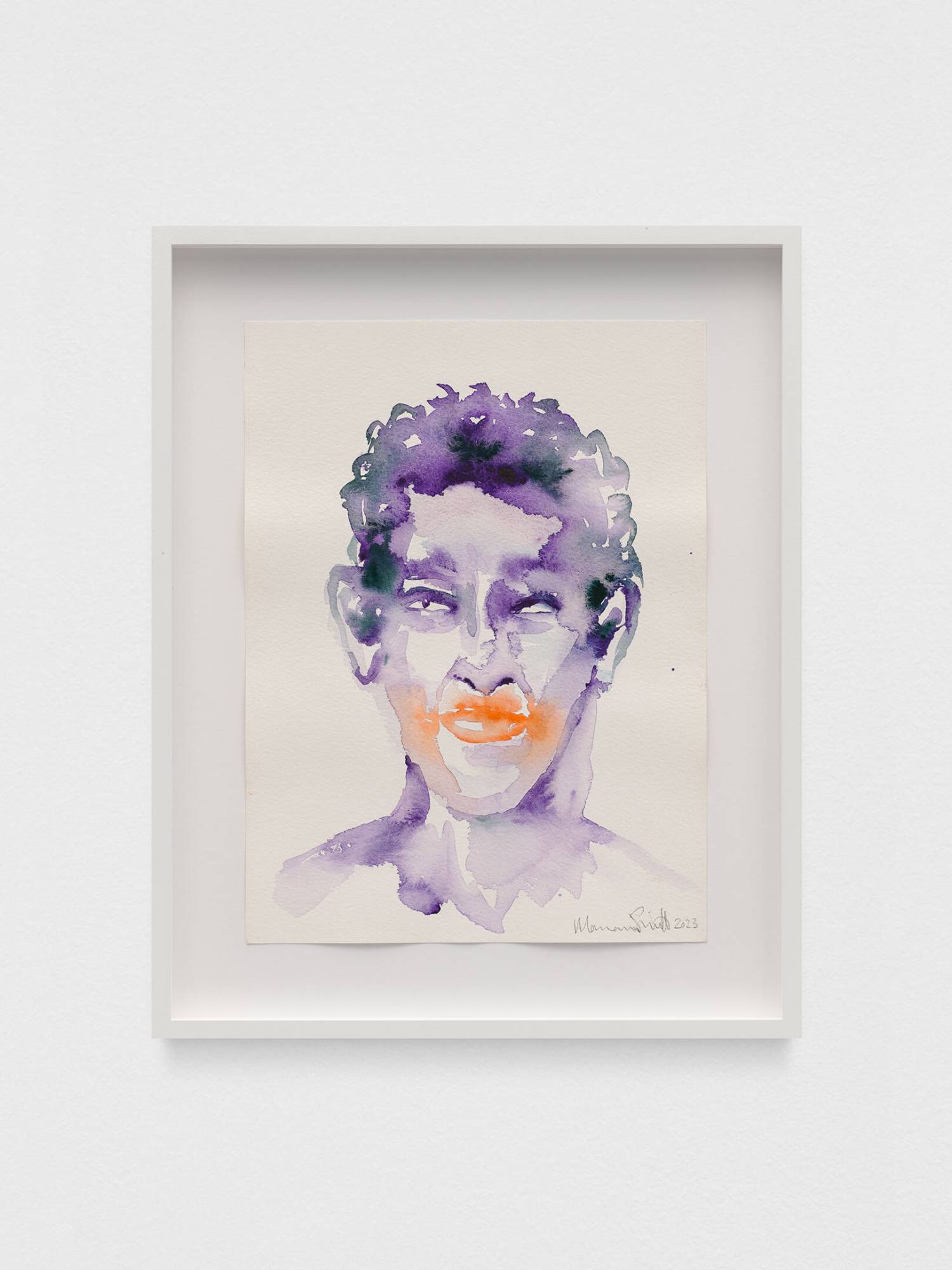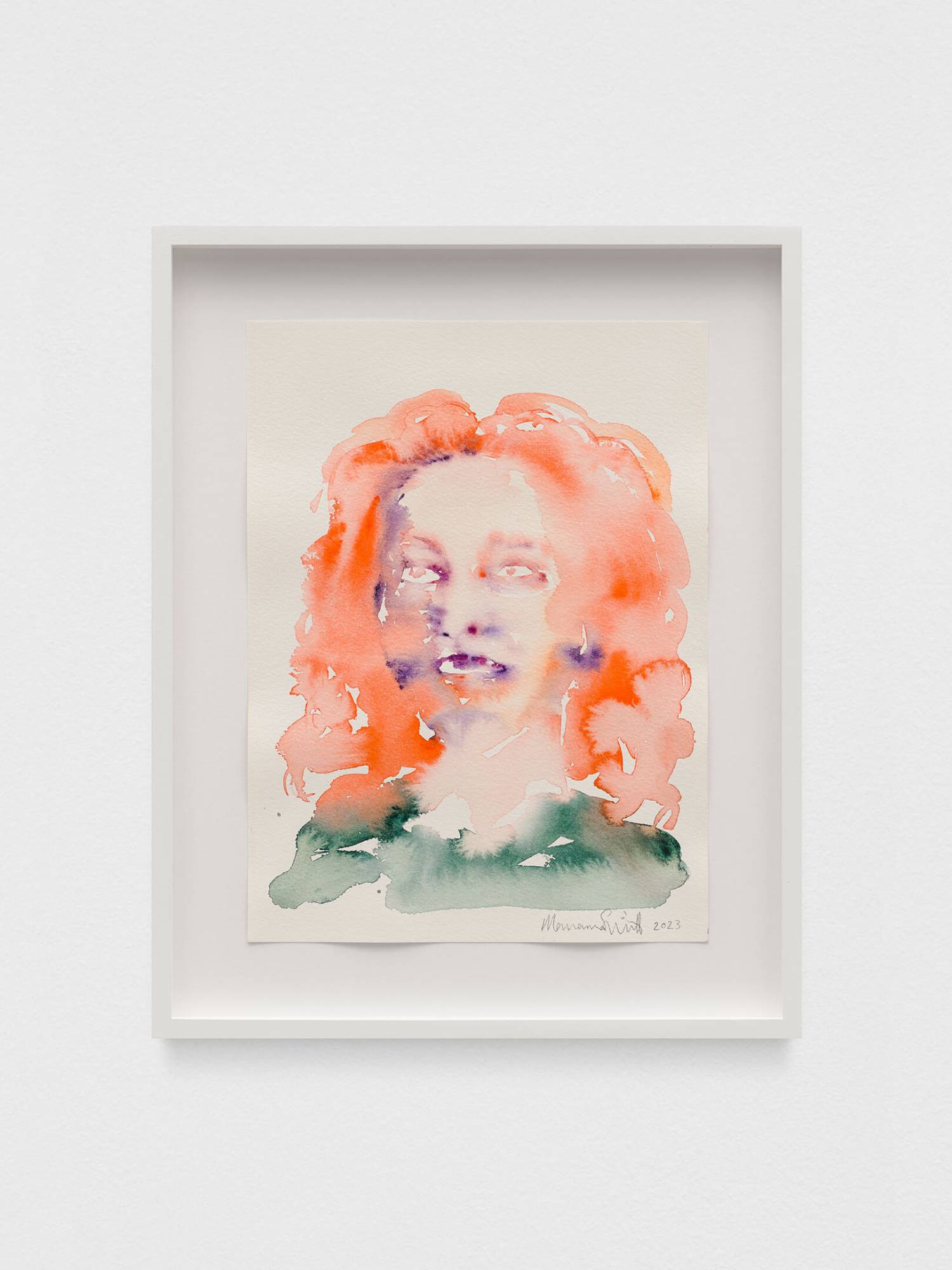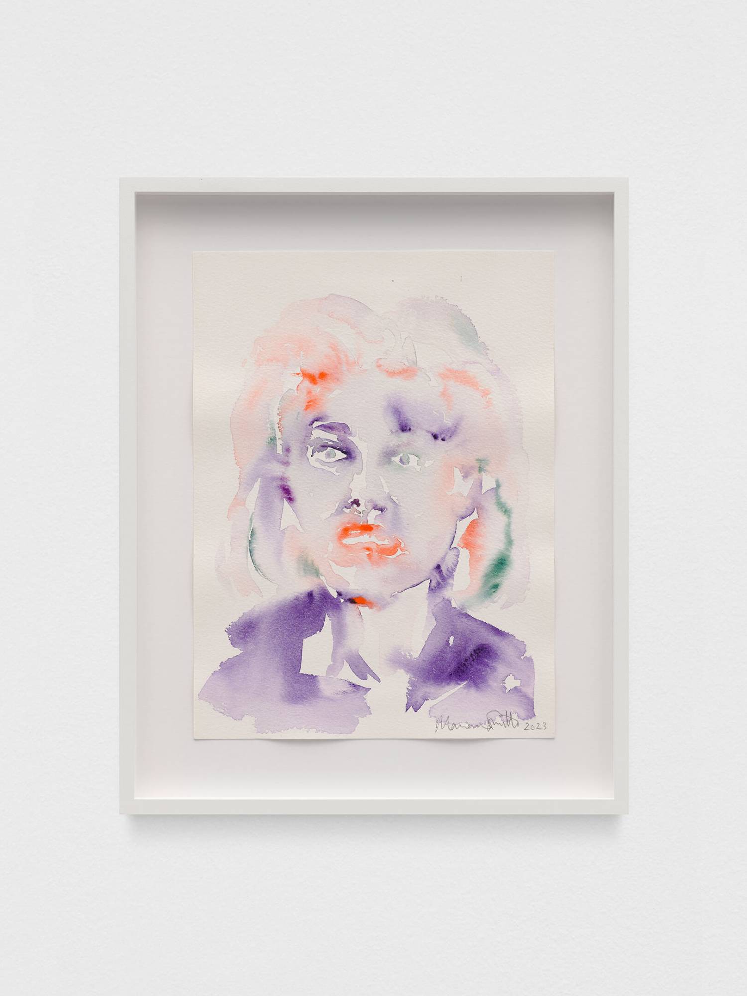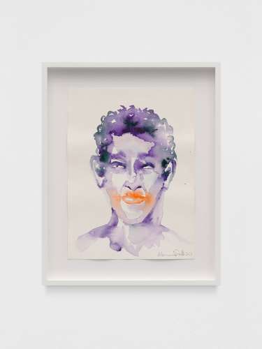 This series depicts one-to-one encounters linked by a stripped-back colour palette inspired by the shimmering purple-orange skies, green palms, and deep, sparkling, dreamy hues of Los Angeles, the city where they were created. Simnett used these intimate watercolour sessions as a way to get to know local artists and reconnect with friends.
